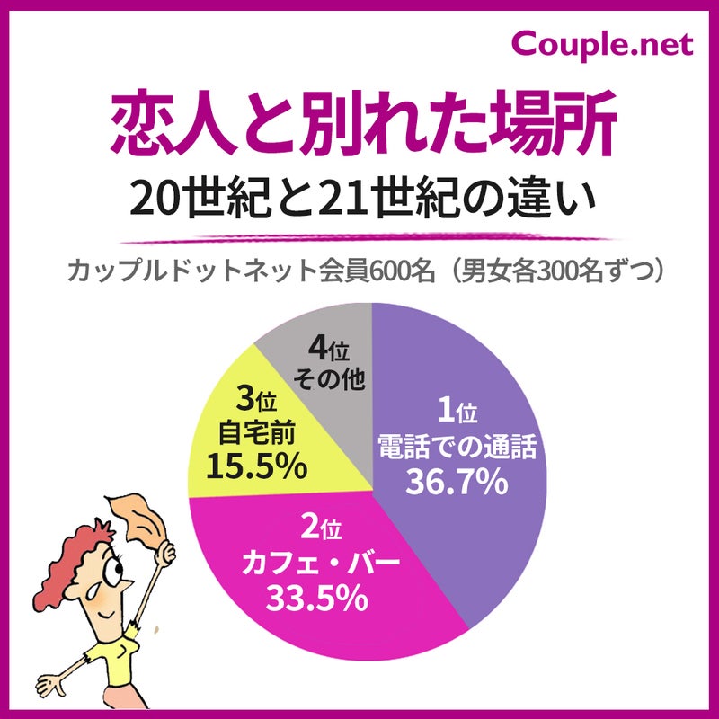 つまり、20世紀にはカフェで直接会って別れるケースが多かったのに対し、