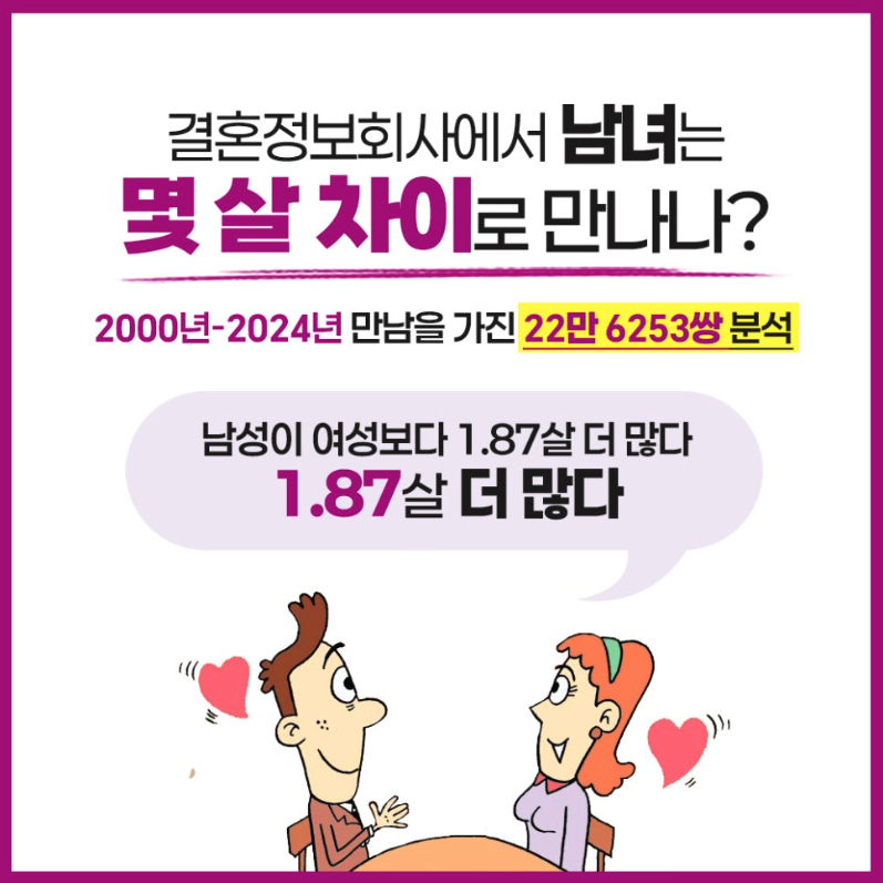 흥미로운 사실은 몇 년 전 16만8920쌍을 대상으로 분석한 소개팅 남녀 나이차는 1.98세로 나타났는데요.