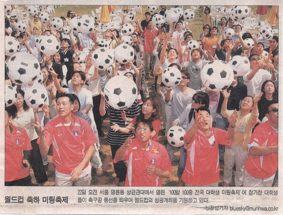 2일 오전 서울 명륜동 성균관대에서 열린 '100발 100중 전국 대학생 미팅축제'에 참가한 대학생 들이 축구공 풍선을 띄우며 월드컵의 성공개최를 기원하고 있다.