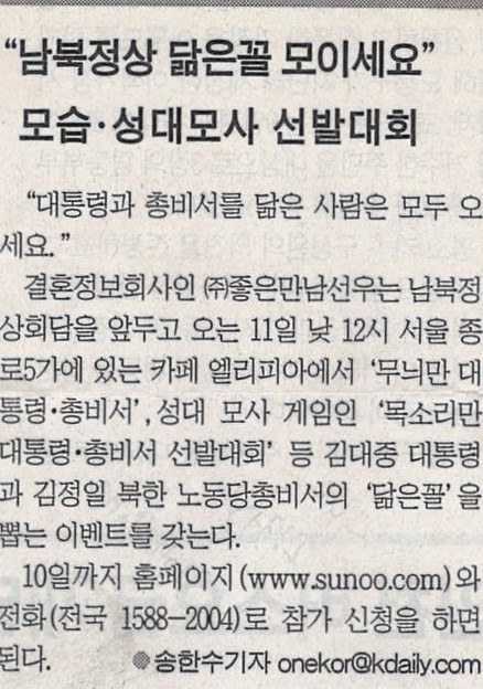 ▲ Prev : 남북 두정상 닮은사람 미팅에 공짜진료까지 - 국민일보