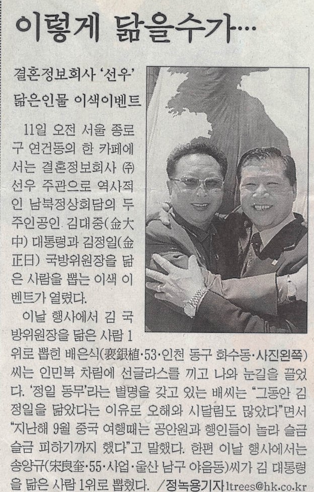 11일 오전 서울 종로구 연건동의 한 카페에서는 결혼정보회사 선우 주관으로 역사적인 남북정상회담의 두 주인공인 김대중(金大中) 대통령과 김정일(金正日) 국방위원장을 닮은 사람을 뽑는 이색 이벤트가 열렸다.